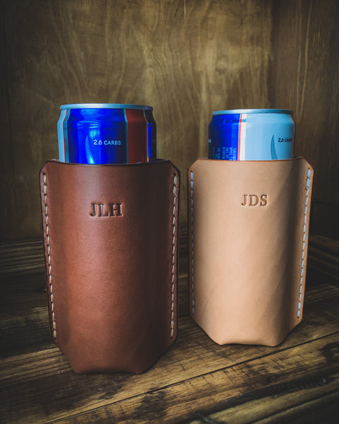 Customize your handcrafted leather Coozie with a complimentary monogram (Up to 3 letters). ** Be sure to include personalized monogram of choice in the notes section at checkout.**