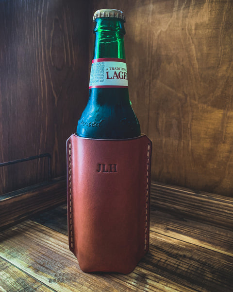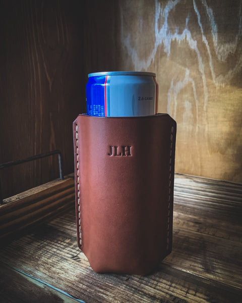 Our Coozies are handcrafted from full grain leather and hand stitched to fit your beverage of choice perfectly.