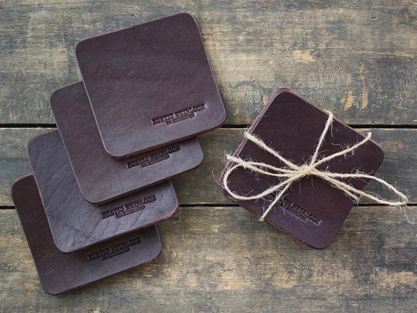 Our handmade leather coasters are the perfect companion to any drink and will keep your table tops free of water rings.